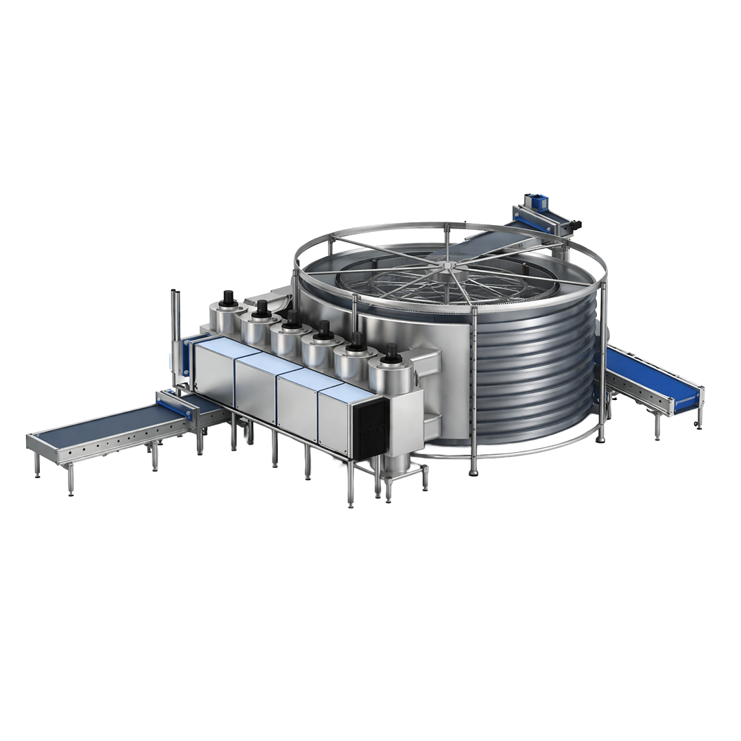 - ■Continuous conveyor system with spiral configuration for uniform and consistent freezing